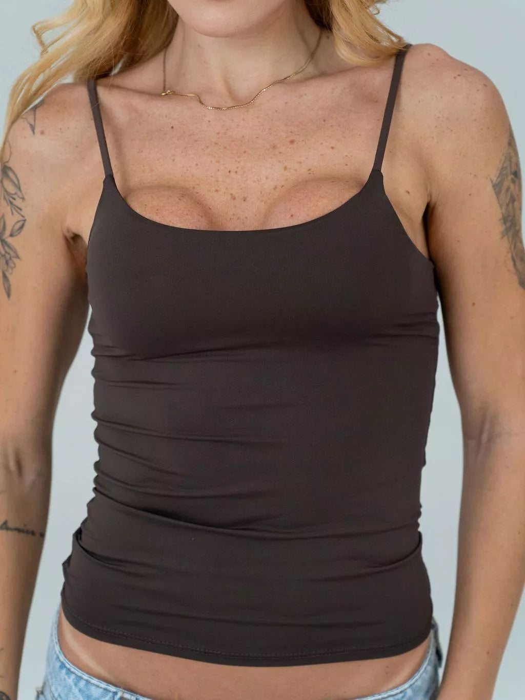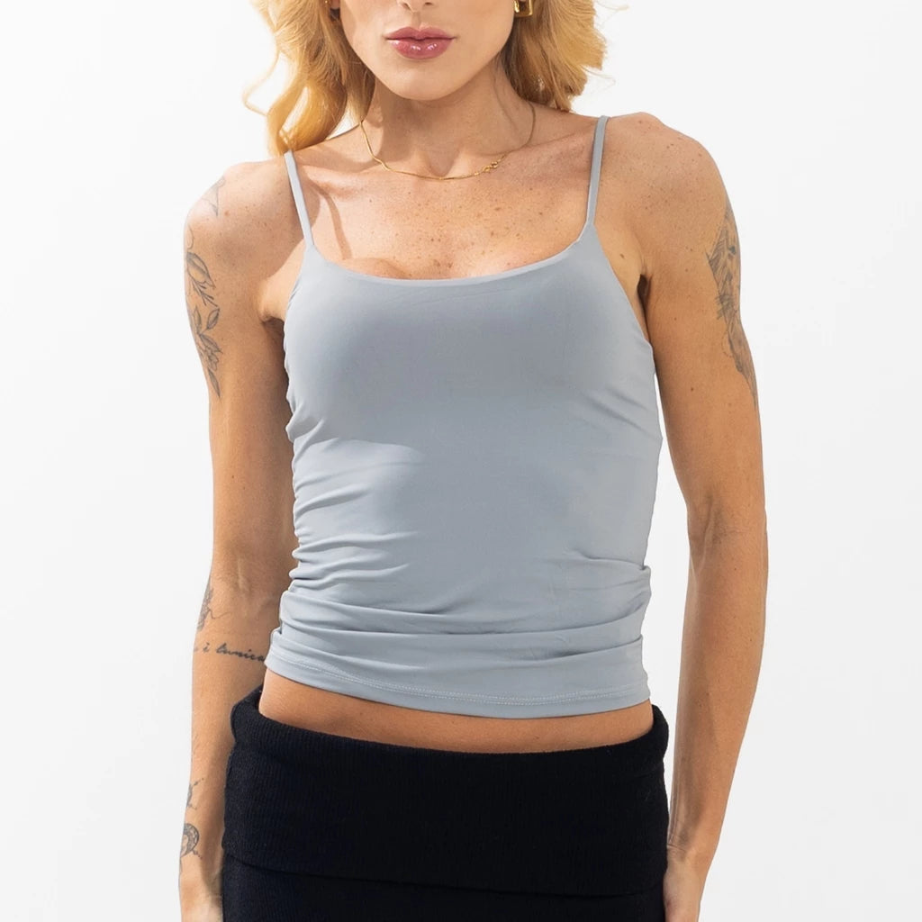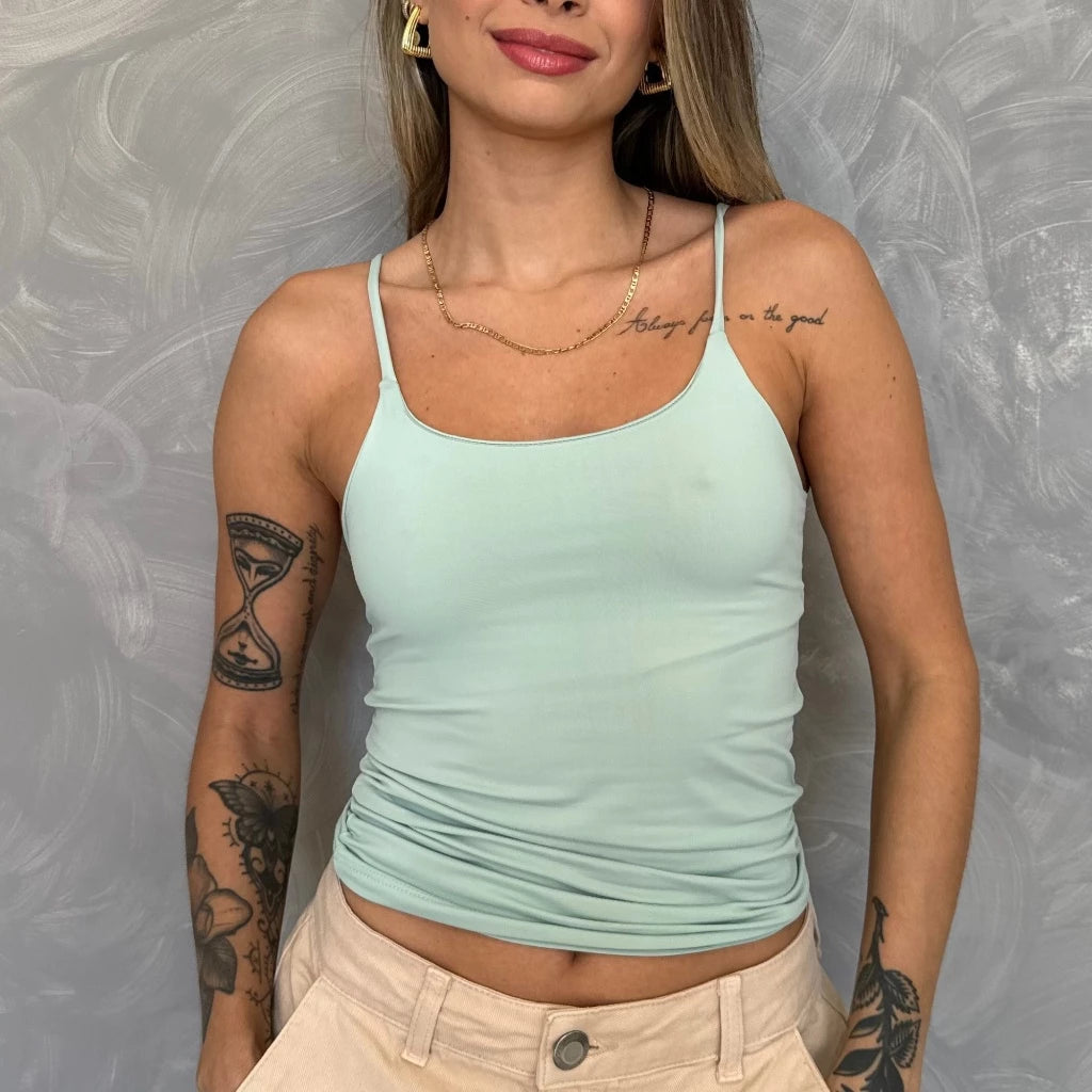 Com design minimalista e alças finas, ela combina facilmente com leggings, shorts e tops, sendo ideal tanto para a academia quanto para looks fitness casuais no dia a dia.